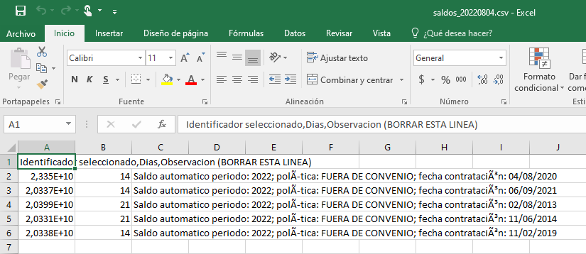 ➦ Identificador del empleado: El reporte se descarga con el CUIL o Identificador Único como valor por defecto. Deberá encontrarse seleccionada esa opción al momento de procesar el archivo.