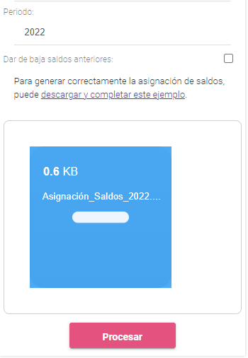 Una vez parametrizados los campos se tendrá que adjuntar el archivo y hacer clic sobre el botón Procesar.
