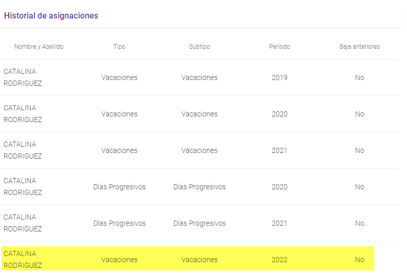 Una vez procesado el archivo es posible chequear el proceso desde la sección Historial de Asignaciones.