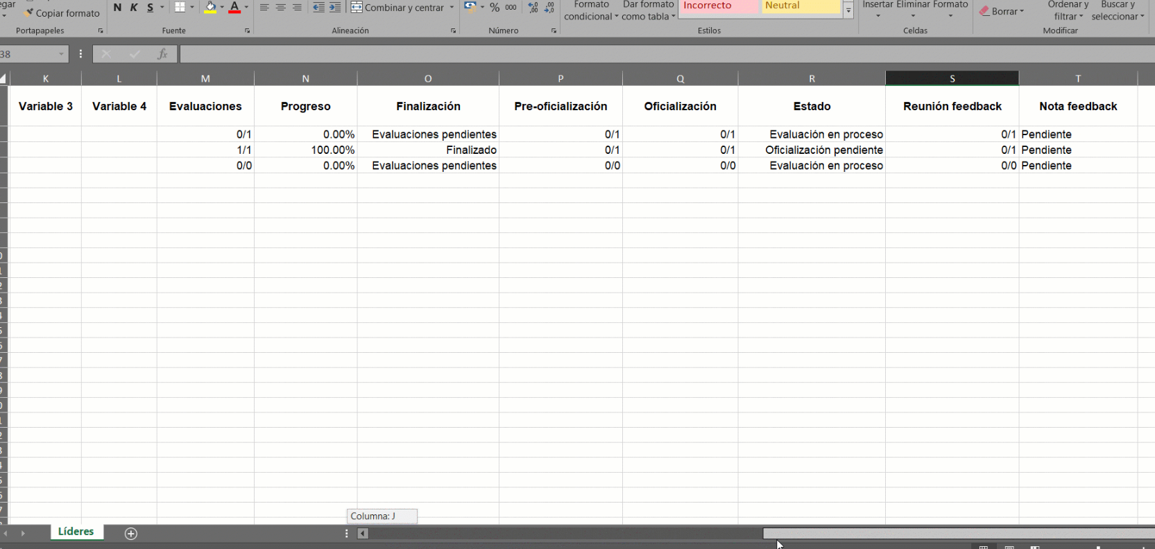 La tabla de líderes te brinda información de todos los líderes que participan en la evaluación, además te muestra el detalle de los procesos involucrados en la evaluación como por ejemplo pre-oficialización (en caso el administrador haya activado la función), el detalle acerca de la finalización de evaluaciones (si cuenta con evaluaciones pendientes o ya las finalizó), el estado de los resultados del equipo, entre otros.