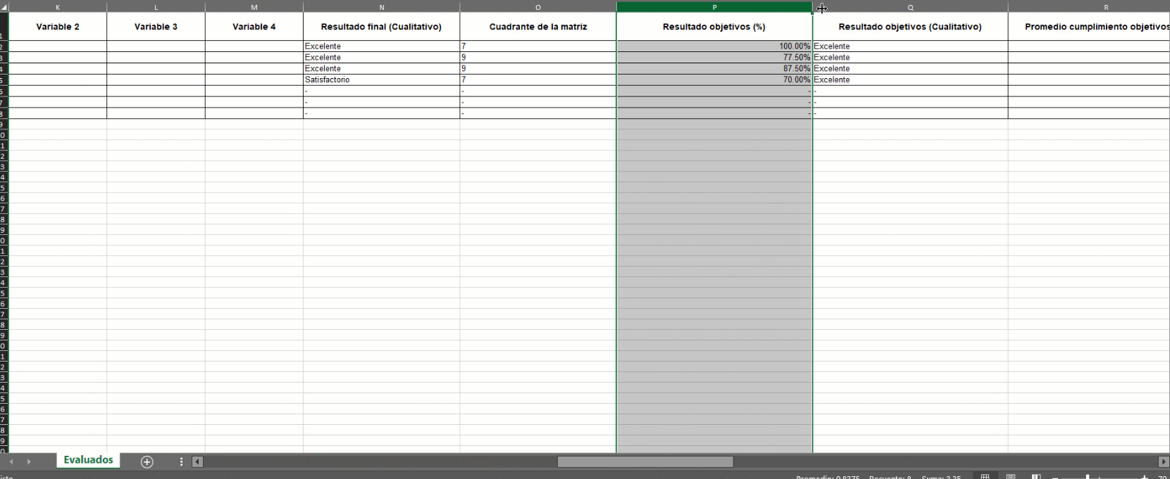 Este es un ejemplo de un reporte de resultados de una evaluación de desempeño:
