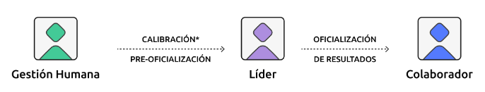 Si la evaluación contempla calibración y tiene el switch de pre-oficialización activado el administrador puede calibrar las evaluaciones, de considerarlo oportuno, y pre-oficializar los resultados para que los líderes sean quienes los oficialicen. Luego de estos pasos los colaboradores recibirán sus resultados.