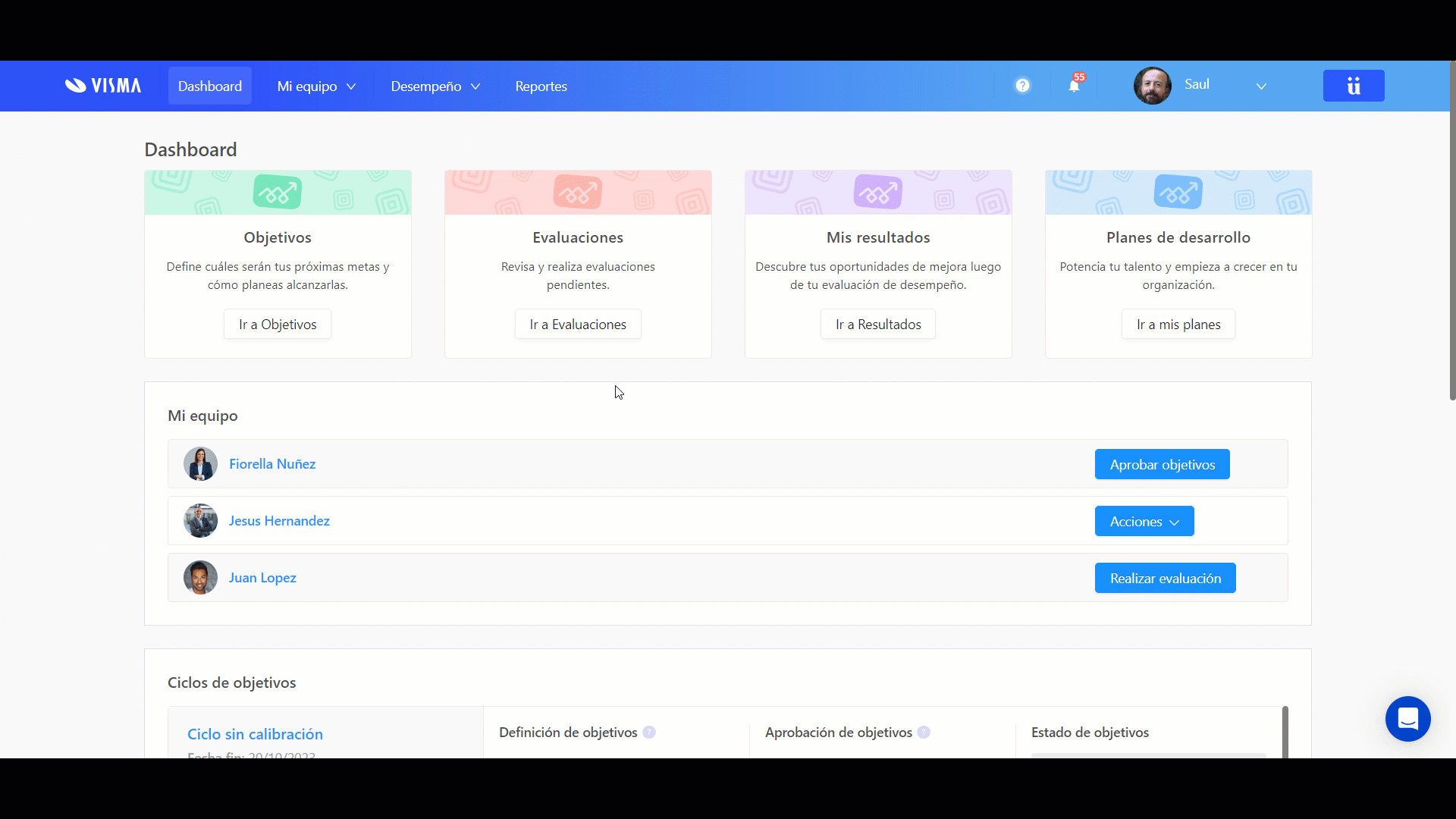 Desempeño de mi equipo: Encontrarás las evaluaciones de tu equipo.