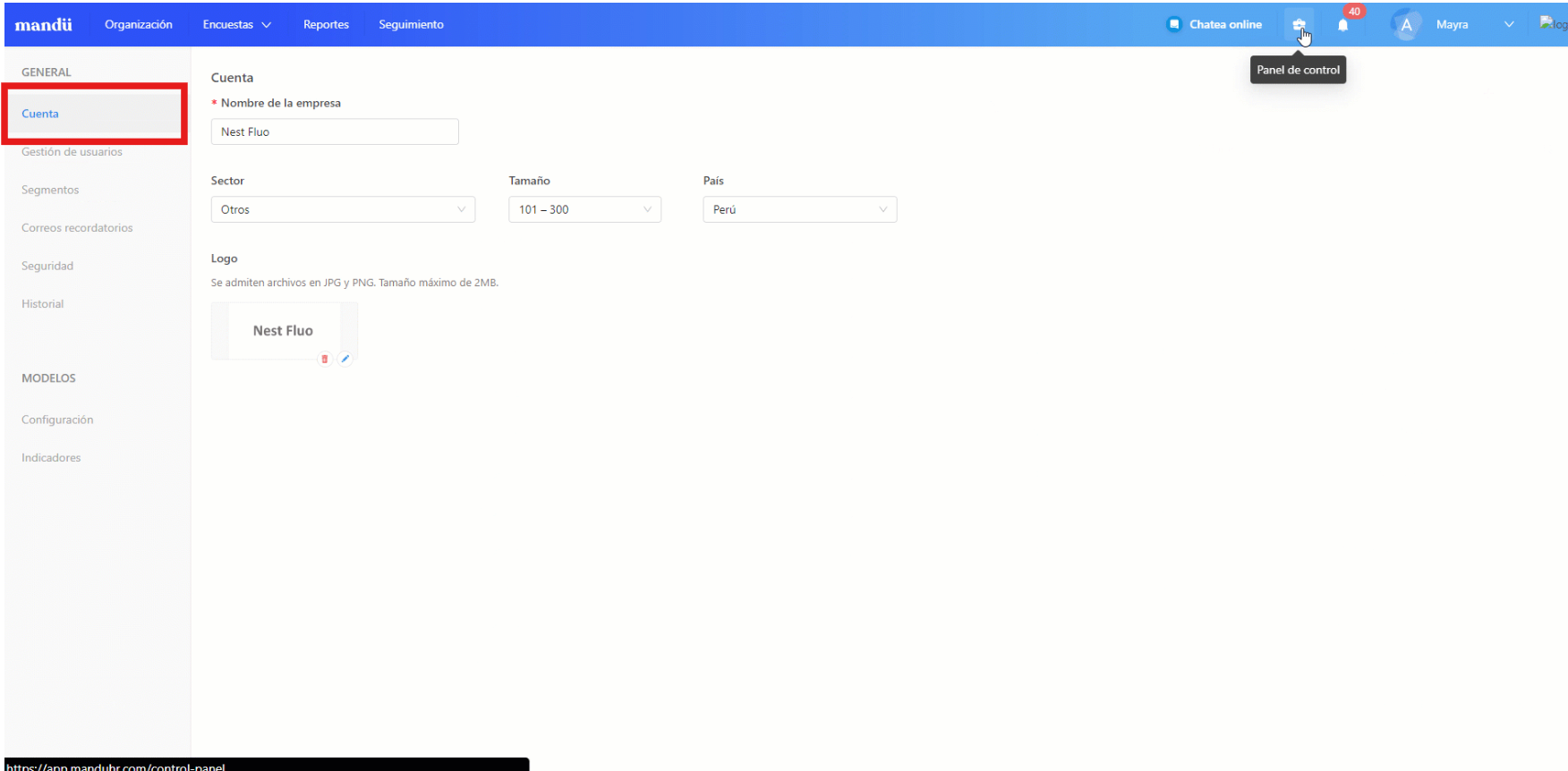 - Nombre de la empresa: Asigna el nombre de tu organización.