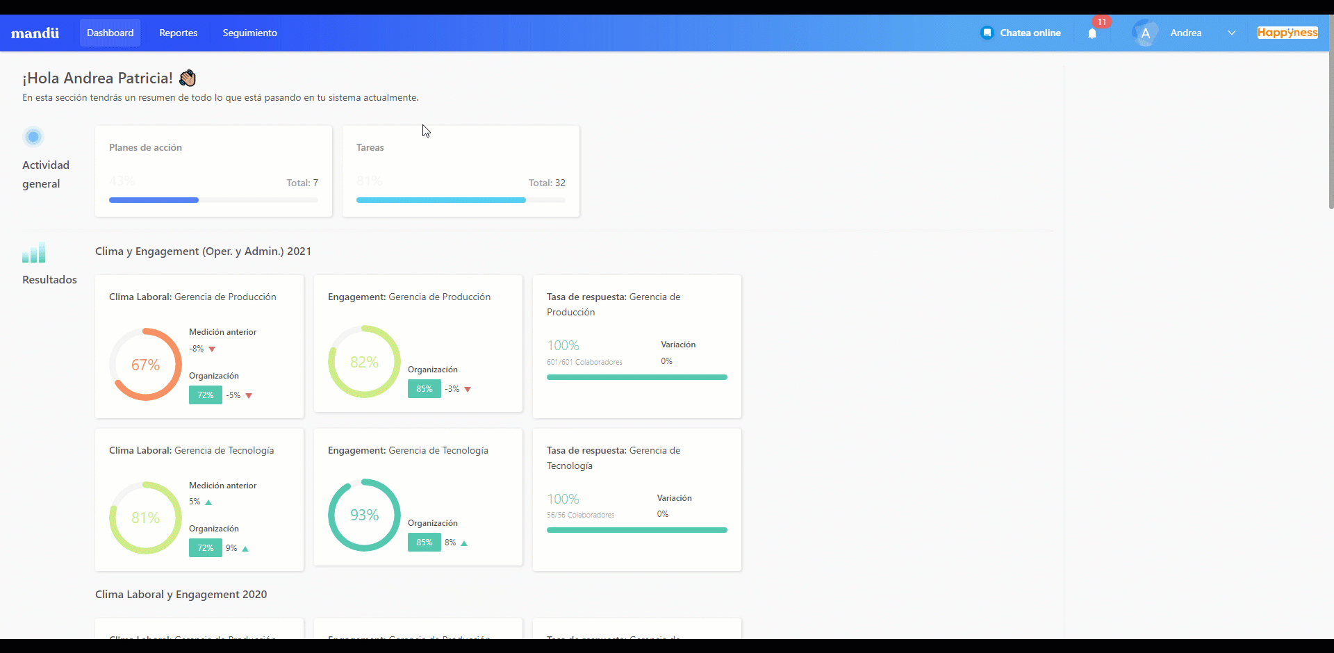 a. Engagement: Representa el nivel de compromiso y entusiasmo de los colaboradores con la organización.